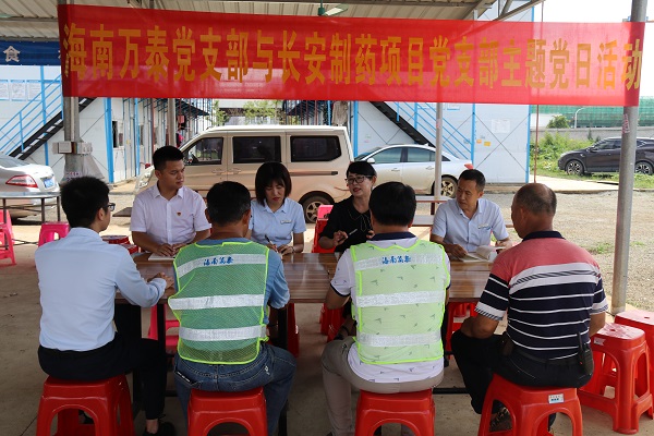 為提升公司基層黨建工作水平,激勵引導(dǎo)黨員立足崗位做表率,不斷推進(jìn)自貿(mào)港建設(shè)作出新的貢獻(xiàn),海南萬泰公司黨支部于2020年9月9日上午組織黨員深入在建項目長安制藥美安科技新城新廠建設(shè)工地,與長安制藥項目黨支部聯(lián)合開展了一次接地氣、入人心的專題黨日學(xué)習(xí)活動,主要是以學(xué)習(xí)海南自貿(mào)港建設(shè)總體方案為重點(diǎn),大家結(jié)合各自實際交流和分享了學(xué)習(xí)心得體會,一致感到自貿(mào)港建設(shè)給企業(yè)發(fā)展帶來了紅利,為老百姓帶來了實惠,作為企業(yè)的一名共產(chǎn)黨員應(yīng)該即當(dāng)好自貿(mào)港的建設(shè)者,又要通過模范帶頭作用,當(dāng)好自貿(mào)港建設(shè)的推動者。萬泰公司黨支部副書記孟晨、長安制藥項目黨支部書記張蕾及項目黨員、入黨積極分子參加了活動。