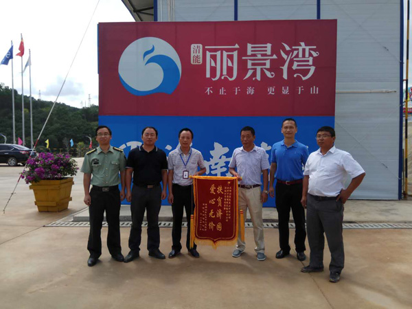 五指山市毛道鄉(xiāng)武裝部部長胡國萬為海南萬泰清能麗景灣項目部送錦旗。
