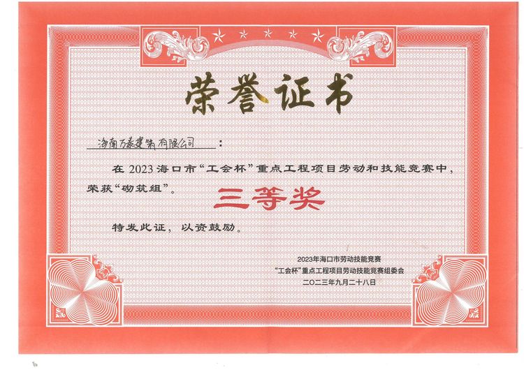 為進一步弘揚勞模工匠精神和發(fā)揮職工先進示范帶頭作用,推動企業(yè)高質(zhì)量發(fā)展 ,9月28日上午,由海口市總工會、海口市發(fā)展改革委員會、海口市住房和城鄉(xiāng)建設(shè)局主辦,海口市建筑業(yè)協(xié)會、中海實業(yè)有限責任公司、中化學建設(shè)(海南)有限公司承辦的2023海口市勞動技能競賽-建筑行業(yè)技能比賽,在由中化學建設(shè)(海南)有限公司承建的中國海油深海能源開發(fā)總指揮部基地項目01地塊項目部隆重舉行。來自海南萬泰建筑工程有限公司、中化學建設(shè)(海南)有限公司、中國建筑第五工程局有限公司等9家海南省建筑業(yè)企業(yè),共計110名參賽選手同臺競技,互相角逐,賽出水平,展現(xiàn)風采。海南萬泰公司總經(jīng)理顏利、黨支部書記曹珊珊及總經(jīng)辦、工程部、綜合部有關(guān)人員參加本次活動。