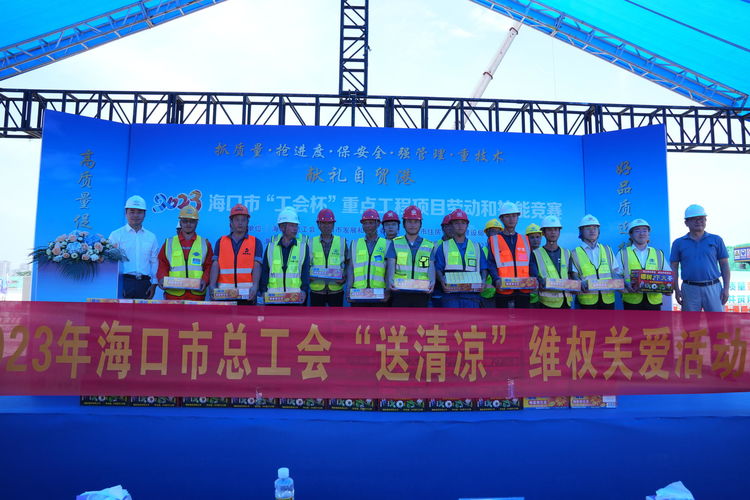 隨著競賽接近尾聲,競賽主辦方還在比賽現(xiàn)場開展了“送清涼”活動,海口市總工會及市發(fā)改委有關(guān)領(lǐng)導(dǎo)為工友們送上了菊花茶、下火茶等防暑降溫物資,并叮囑各單位要站在“以人為本、促進和諧、安全生產(chǎn)”的高度,切實關(guān)心職工身體健康和勞動生產(chǎn)安全。