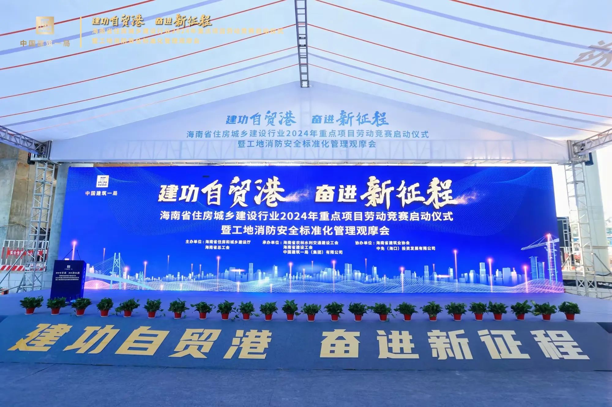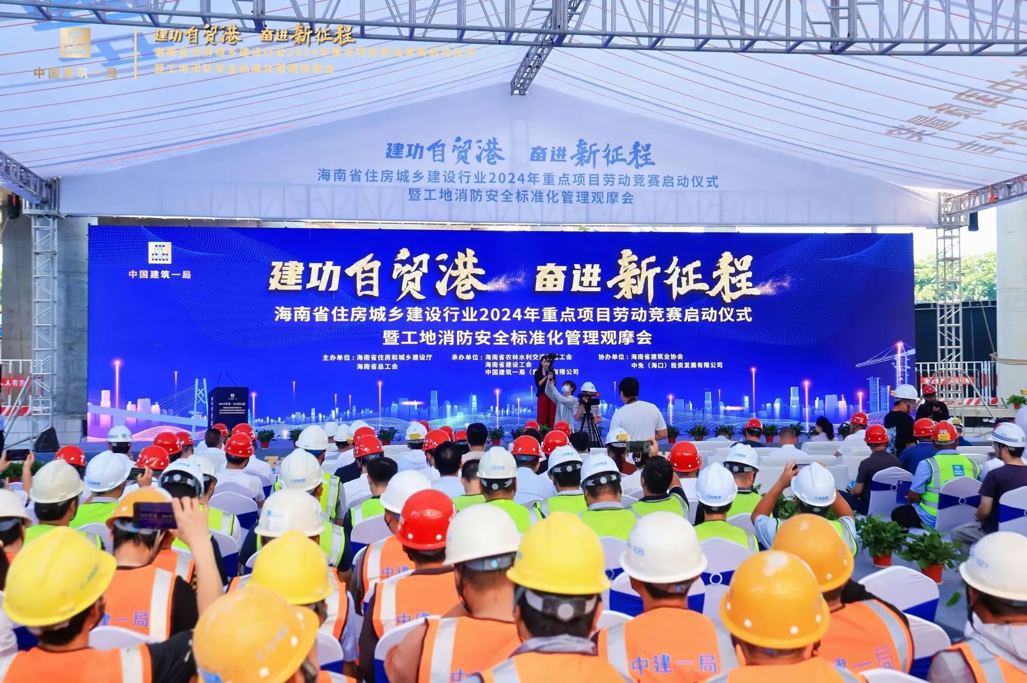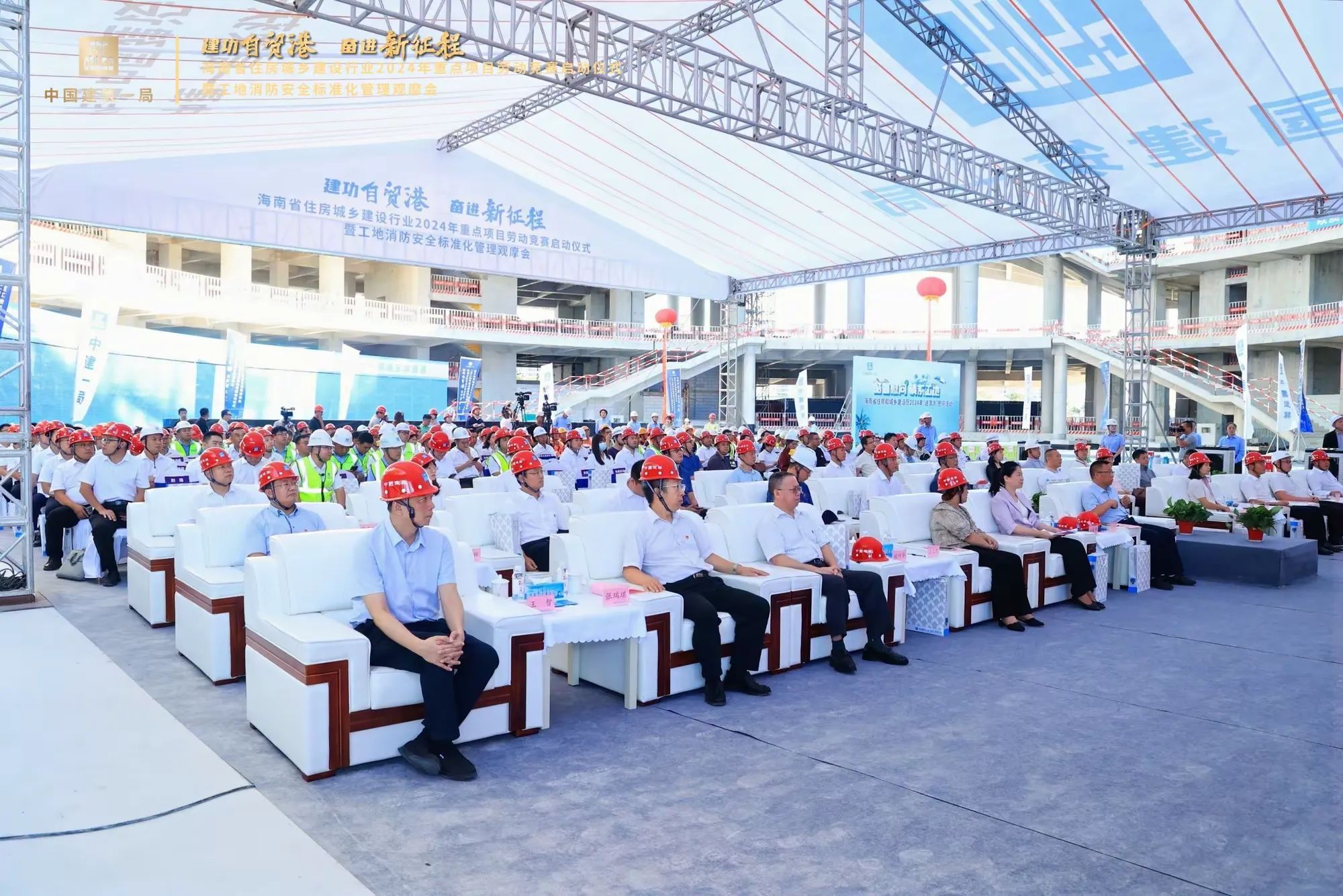為深入學習貫徹習近平新時代中國特色社會主義思想和黨的二十大精神,貫徹落實習近平總書記關于工人階級和工會工作的重要論述,大力弘揚勞模精神、勞動精神、工匠精神。2024年7月10日,由海南省住房和城鄉建設廳、海南省總工會主辦,海南省農林水利交通建設工會、海南省建設工會、中建一局承辦的“建功自貿港、奮進新征程”海南省住房城鄉建設行業2024年重點項目勞動競賽啟動儀式暨工地消防安全標準化管理觀摩會在海口國際免稅城項目工地啟動,省住建廳黨組成員、副廳長劉聯偉,省總工會黨組成員、副主席陳樺,省住建廳總工程師孫淑華等相關單位領導出席活動。海南萬泰公司黨支部、工會參加了本次活動。