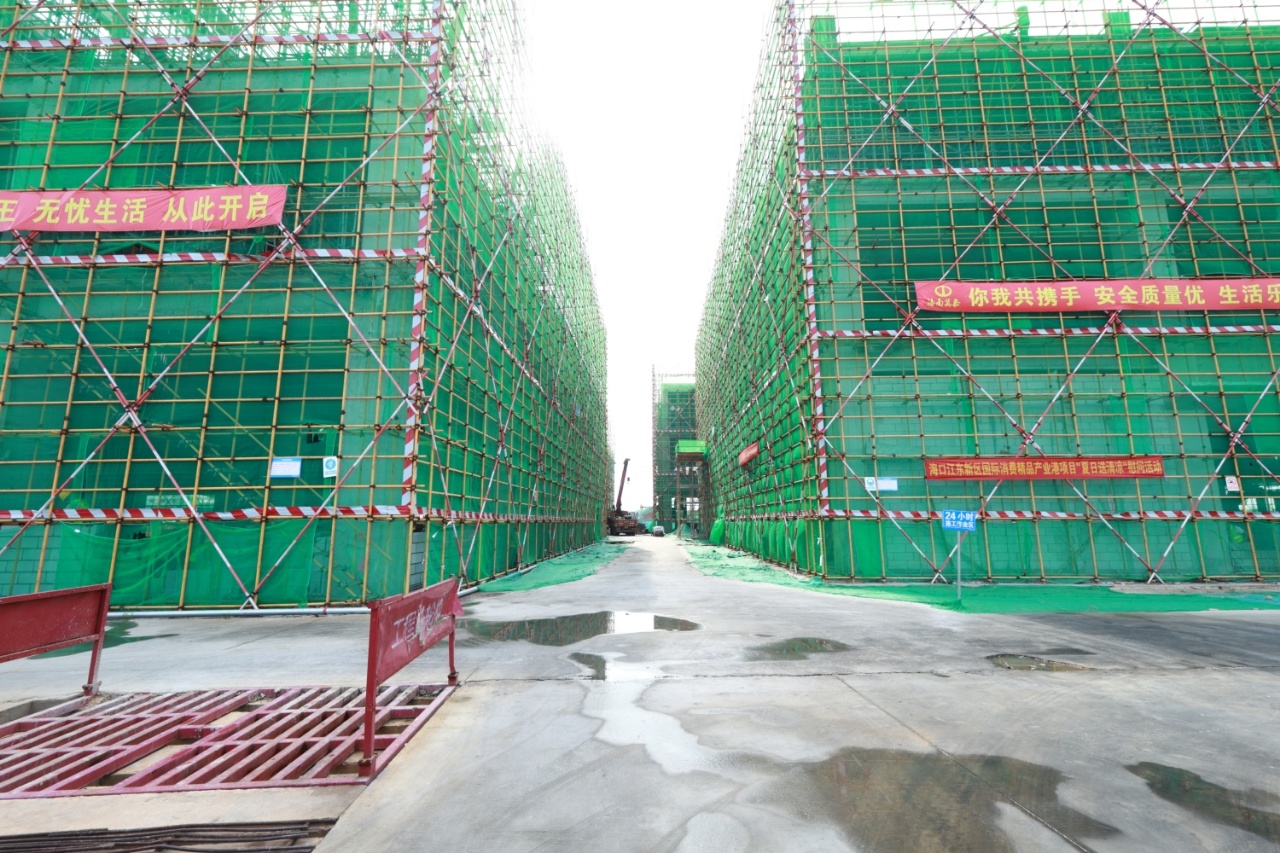 海口江東新區國際消費精品產業港項目坐落于海口市江東新區夏云路交興洋四橫路交匯處,總建筑面積23821.29㎡,總占地面積15927.36㎡。其中地上建筑面積為23821.29㎡,無地下室。由A#、B#、C#、D#樓4棟建筑組成,均為丙類多層廠房,是海南民企助力城市更新、踐行企業責任的重要項目。自啟動以來,便備受各界關注,其承載著推動區域經濟發展、打造消費精品產業集聚地的重要使命。