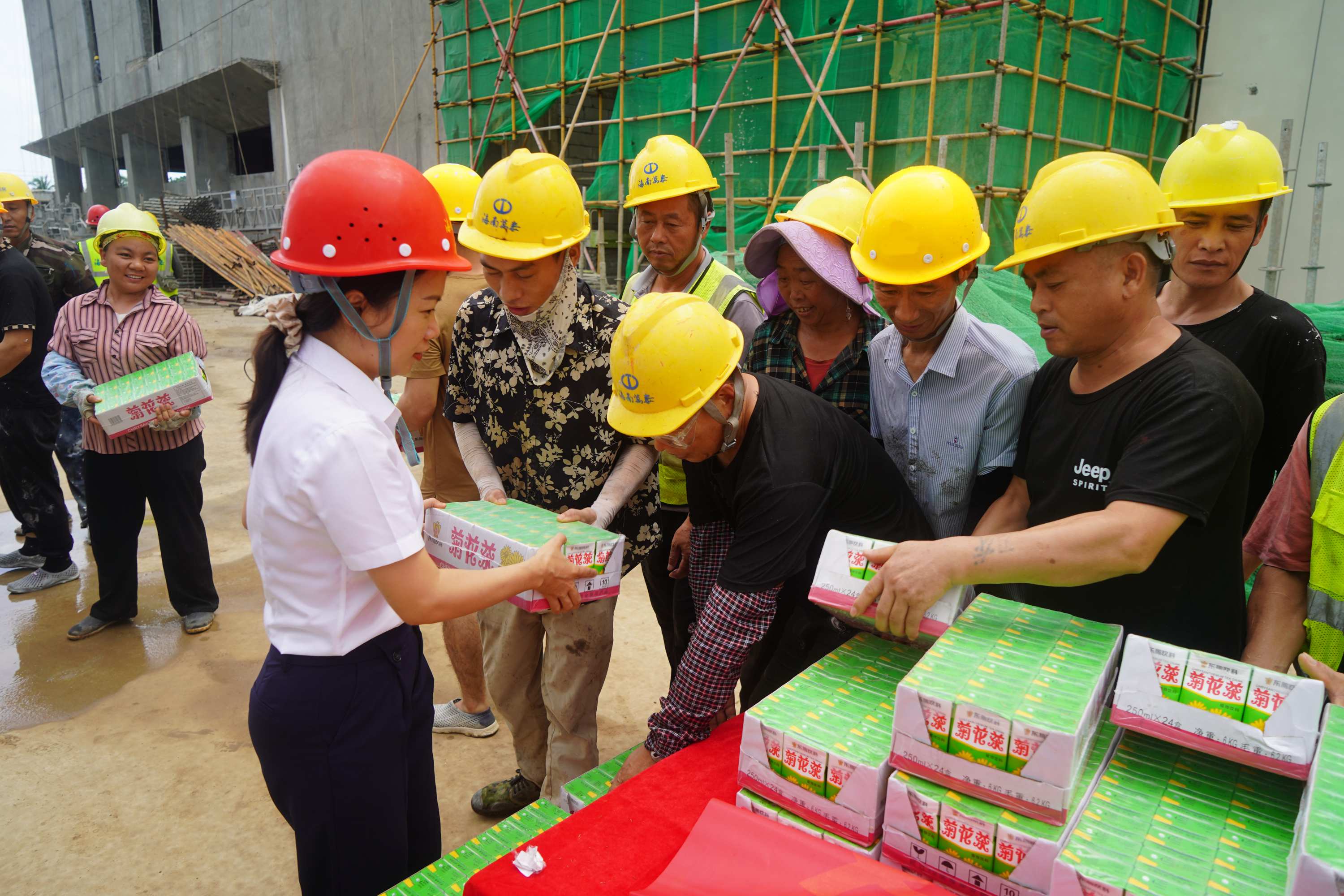 酷暑送清涼,關懷沁人心。2025年9月22日上午,海南萬泰公司黨支部、工會組織前往海口江東新區(qū)國際消費精品產(chǎn)業(yè)港項目工地開展“夏送清涼”慰問一線項目工人活動,為堅守在高溫下的一線工友們送去了綠豆、下火涼茶等防暑降溫物資,在炎炎夏日中為他們帶去了一份清涼與企業(yè)的關懷。公司黨支部、工會、總經(jīng)辦及工程部相關人員參加了本次活動。