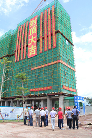 自今年二月份瓊?!靶胚_?銀海御湖(一期)”項目開工以來,海南萬泰施工團隊不畏艱辛,克服海南高溫多雨的氣候特點,保質、保量,緊張施工,嚴格把控項目的各個施工細節,“信達?銀海御湖(一期)”項目9#樓率先完成主體封頂。