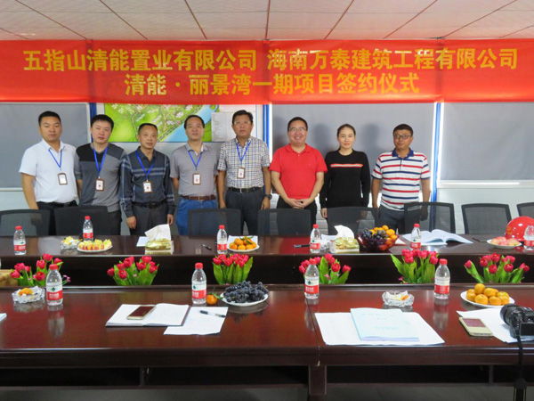海南萬泰建筑工程有限公司總經理張小龍、工程部部長張小云、五指山清能置業有限公司執行董事羅曉東、項目總經理尹宏、總工程師向俊宜、工程部副經理彭愛明等共同參加了簽約儀式。