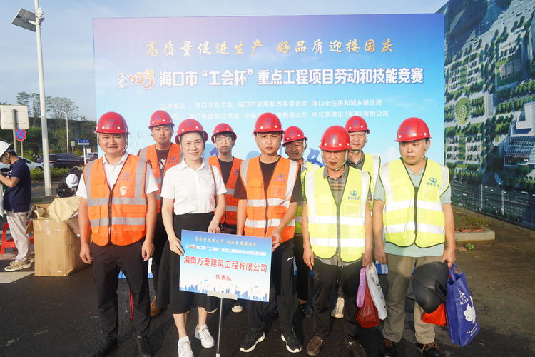 9月28日上午,由??谑锌偣⒑?谑邪l展改革委員會、??谑凶》亢统青l建設局主辦,海口市建筑業協會、中海實業有限責任公司、中化學建設(海南)有限公司承辦的2023??谑袆趧蛹寄芨傎?建筑行業技能比賽,在由中化學建設(海南)有限公司承建的中國海油深海能源開發總指揮部基地項目01地塊項目部隆重舉行。來自海南萬泰建筑工程有限公司、中化學建設(海南)有限公司、中國建筑第五工程局有限公司等9家海南省建筑業企業,共計110名參賽選手同臺競技,互相角逐,賽出水平,展現風采。海南萬泰公司總經理顏利、黨支部書記曹珊珊及總經辦、工程部、綜合部有關人員參加本次活動。