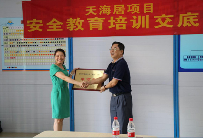 2016年4月5日下午,海口市“雙創”工作領導小組對2015年海口市“雙創”工作中涌現出的先進集體和個人進行表彰。由萬泰公司承建的“天海居”項目作為“雙創”示范工地,在“除四害、病媒防治”方面表現突出,榮獲2015年“雙創”工作典型示范單位單項獎。
