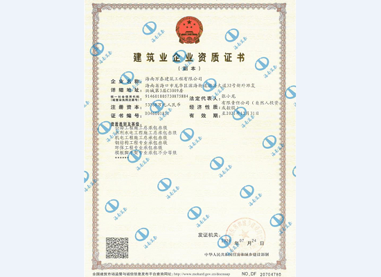您當(dāng)前所在位置: 首頁(yè) > 走進(jìn)萬(wàn)泰 > 公司資質(zhì)